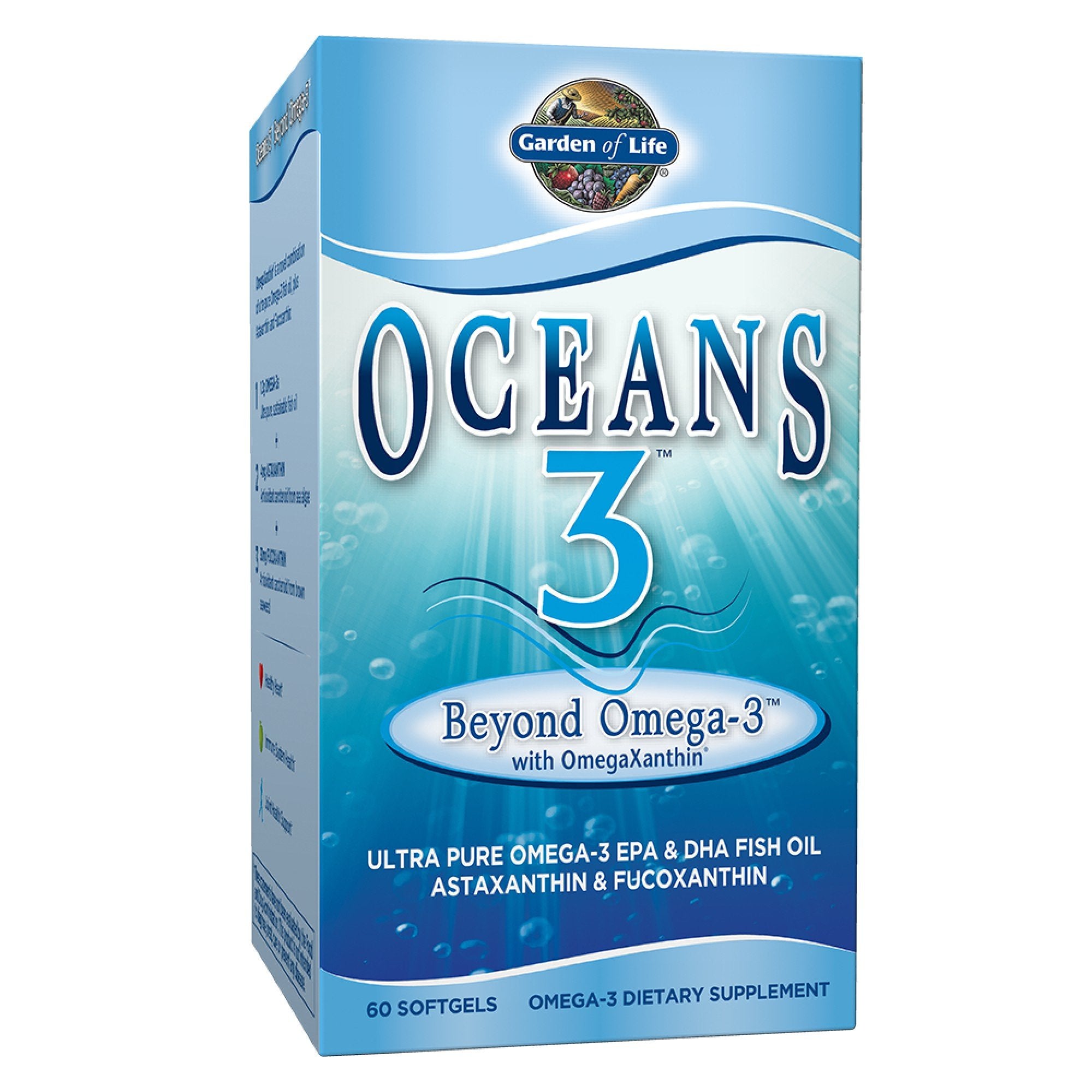 Why settle for only Omega-3 fish oil when you can get "amplified benefits" with Oceans 3 Beyond Omega-3, the only Omega-3 supplement available with OmegaXanthin. A synergistic complex of three health-promoting compounds from the ocean, OmegaXanthin provides all the benefits of a high potency Omega-3 supplement plus two ocean-based antioxidants for an amplified range of benefits unmatched by ordinary Omega-3 formulations.
