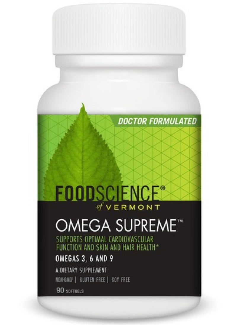 Omega Supreme is a blend of Non-GMO, natural oils from Borage and Flax Seeds and Fish. This combination provides a rich supply of omega 3, 6, and 9 fatty acids, which are important to cardiovascular, skin and hair health.