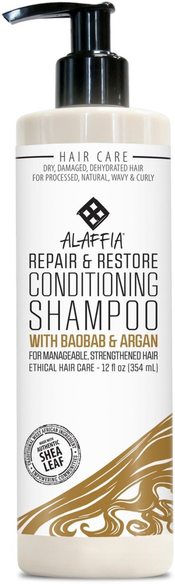 Alaffias natural ingredient inspired Conditioning Shampoo works with Repair & Restore Crme Conditioner to moisturize and soothe hair and scalp. Gently cleanse without stripping natural oils, color and/or process treatments. Over time, reverse dryness and reduce frizz with Repair & Restore.